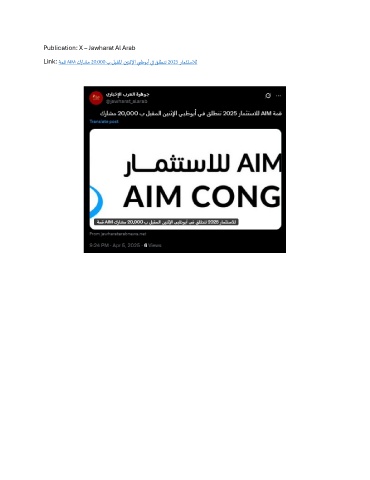 Publication: X – Jawharat Al Arab Link: ةمق AIM كراشم 20,000 ب لبقلما نينثلإا يبظوبأ يف قلطنت 2025 رامثتسلال