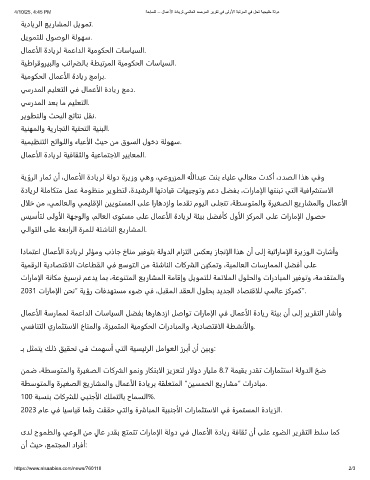 لﺎﻤﻋألا ﺔﺳرﺎﻤﻤﻟ ﺔﻤﻋاﺪﻟا تﺎﺳﺎﻴﺴﻟا ﻞﻀﻔﺑ ﺎﻫرﺎﻫدزا ﻞﺻاﻮﺗ تارﺎﻣإلا ﻲﻓ لﺎﻤﻋألا ةدﺎﻳر ﺔﺌﻴﺑ نأ ﻰﻟإ ﺮﻳﺮﻘﺘﻟا رﺎﺷأو