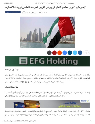 4/10/25, 2:40 PM «لﺎﻣﻋﻷا ةدﺎﯾرﻟ ﻲﻣﻟﺎﻌﻟا دﺻرﻣﻟا رﯾرﻘﺗ ﻲﻓ ﻊﺑارﻟا مﺎﻌﻠﻟ ً ﺎﯾﻣﻟﺎﻋ ﻰﻟوﻷا «تارﺎﻣﻹا - fintechgate