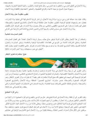 ﺔﻤﻋاد تﺎﺳﺎﯿﺴﺑ ﺔﻋﻮﻓﺪﻣ ، ً ﺎﯿﻤﻟﺎﻋ ﺎﮭﻣﺪﻘﺗو ﺎھرﺎھدزا ﻞﺻاﻮﺗ تارﺎﻣﻹا ﺔﻟود ﻲﻓ لﺎﻤﻋﻷا ةدﺎﯾر ﺔﺌﯿﺑ نأ ﻰﻟإ ﺮﯾﺮﻘﺘﻟا رﺎﺷأو