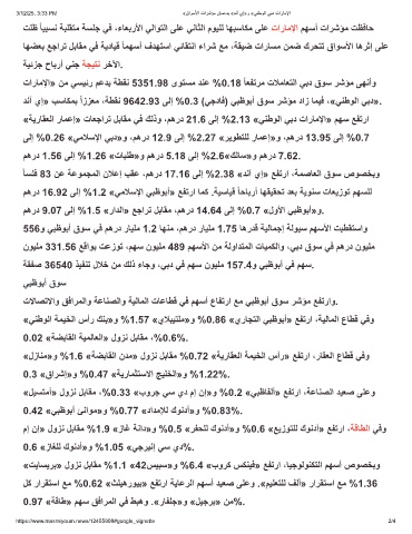 تارﺎﻣﻹا» نﻣ ﻲﺳﯾﺋر مﻋدﺑ ﺔطﻘﻧ 5351.98 ىوﺗﺳﻣ دﻧﻋ %0.18 ًﺎﻌﻔﺗرﻣ تﻼﻣﺎﻌﺗﻟا ﻲﺑد قوﺳ رﺷؤﻣ ﻰﮭﻧأو