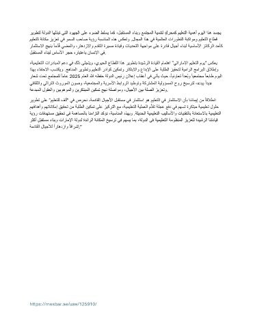 رثكأ ٍلبقتسم ءانبو تاراملإا ةلودل ةدئارلا ةناكملا خيسرت يف مهسي امب ،ةلودلا يف ةيميلعتلا ةموظنملا زيزعتل ةديشرلا انتدايق