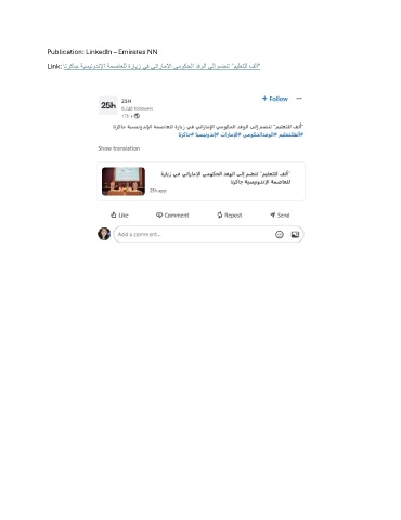 Publication: LinkedIn – Emirates NN Link: تركاج ةيسينودنلإا ةمصاعلل ةرايز يف يتاراملإا يموكحلا دفولا ىلإ مضنت ”ميلعتلل فلأ“ ا