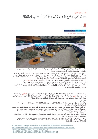 % 0.4 يبظوبأ قوس رشؤم داز اميف ،ةطقن 5361.96 ىوتسم ىلإ % 2.36 عوبسأ يف يبد قوس رشؤم عفتراو