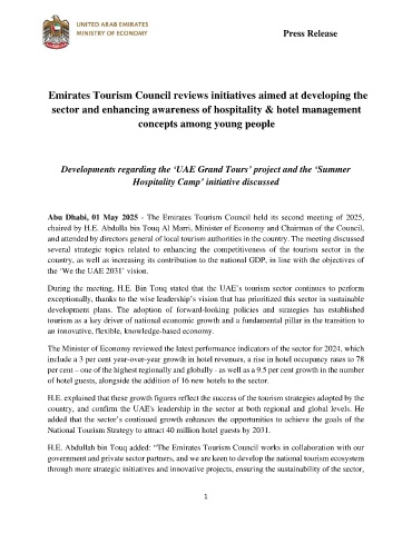 Abu Dhabi, 01 May 2025 - The Emirates Tourism Council held its second  meeting of 2025,