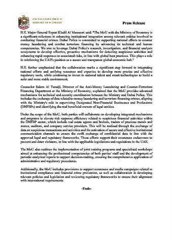 combating financial crimes. Dubai Police is committed to supporting national efforts to counter