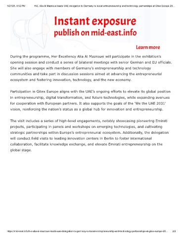 5/27/25, 4:52 PM H.E. Alia Al Mazrouei leads UAE delegation to Germany to boost entrepreneurship and technology partnerships at Gitex Europe 20…