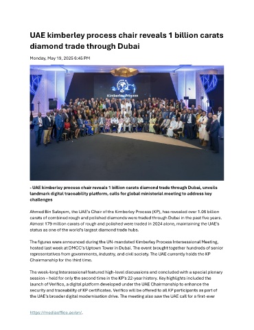 - UAE kimberley process chair reveals 1 billion carats diamond trade through Dubai, unveils