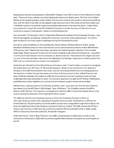 Speaking during the closing session, Ahmed Bin Sulayem, the UAE’s Chair of the Kimberley Process