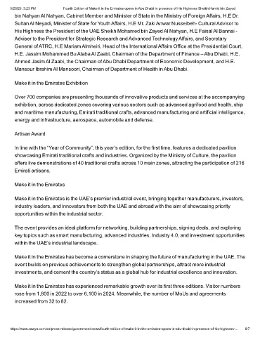 5/26/25, 3:23 PM Fourth Edition of Make it in the Emirates opens in Abu Dhabi in presence of His Highness Sheikh Hamid bin Zayed