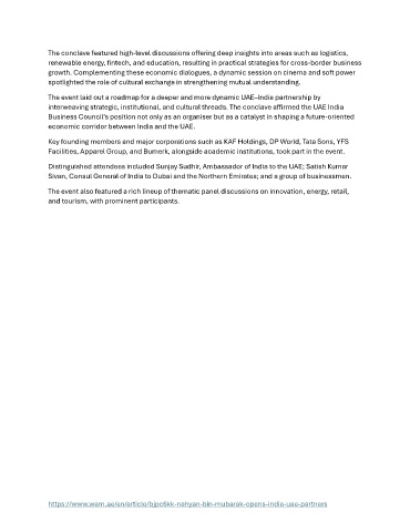interweaving strategic, institutional, and cultural threads. The conclave affirmed the UAE India