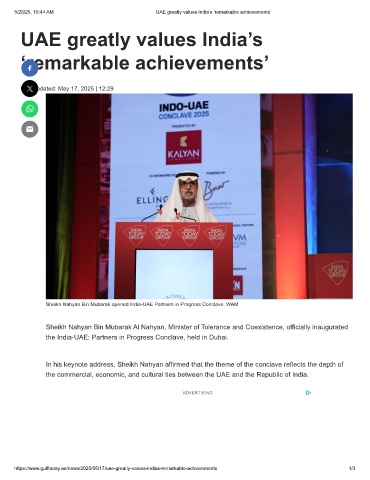 5/26/25, 10:44 AM UAE greatly values India’s ‘remarkable achievements’
