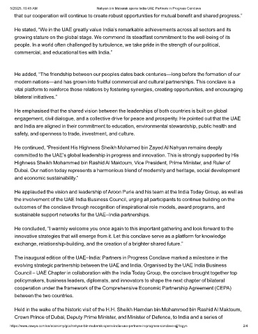 5/26/25, 10:45 AM Nahyan bin Mubarak opens India-UAE Partners in Progress Conclave