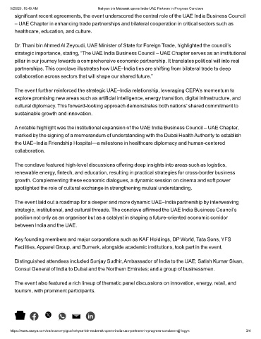 partnerships. This conclave illustrates how UAE–India ties are shifting from bilateral trade to deep
