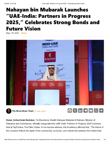 https://thebrewnews.com/thebrew-news/nahayan-bin-mubarak-launches-uae-india-partners-in-progress-2025-celebrates-strong-bonds-and-future-visio… 1/4