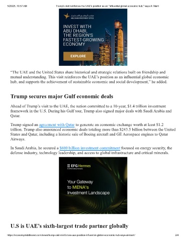5/26/25, 10:57 AM Trump's visit reinforces the UAE's position as an "influential global economic hub," says Al Marri