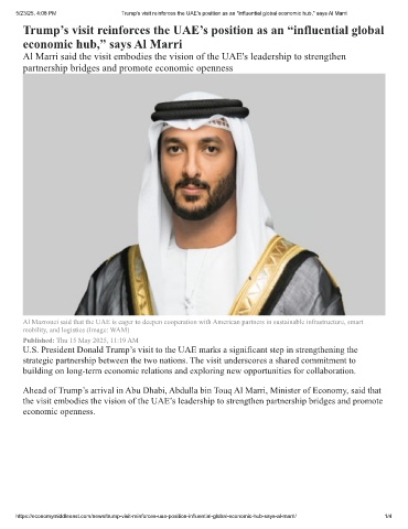 5/23/25, 4:08 PM Trump's visit reinforces the UAE's position as an "influential global economic hub," says Al Marri