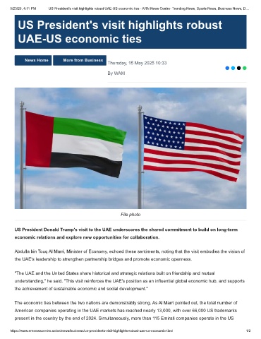 5/23/25, 4:11 PM US President's visit highlights robust UAE-US economic ties - ARN News Centre- Trending News, Sports News, Business News, D…