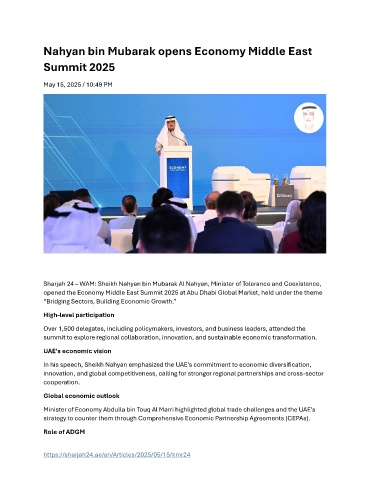 opened the Economy Middle East Summit 2025 at Abu Dhabi Global Market, held under the theme