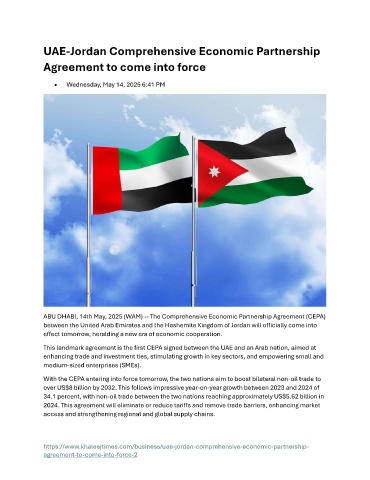 ABU DHABI, 14th May, 2025 (WAM) -- The Comprehensive Economic Partnership Agreement (CEPA)