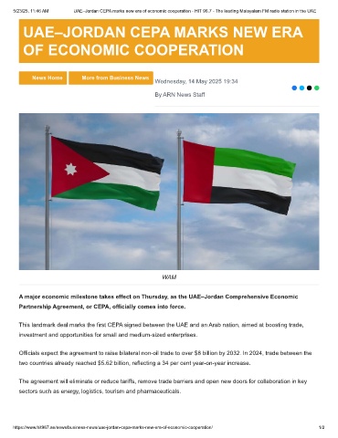 5/23/25, 11:46 AM UAE–Jordan CEPA marks new era of economic cooperation - HIT 96.7 - The leading Malayalam FM radio station in the UAE