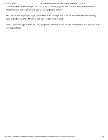 5/23/25, 11:46 AM UAE–Jordan CEPA marks new era of economic cooperation - City 1016