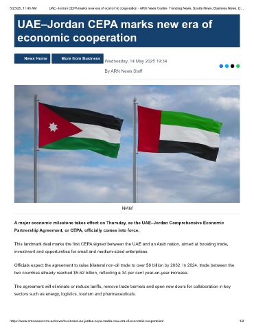5/23/25, 11:46 AM UAE–Jordan CEPA marks new era of economic cooperation - ARN News Centre- Trending News, Sports News, Business News, D…