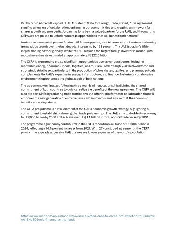 shared growth and prosperity. Jordan has long been a valued partner for the UAE, and through this