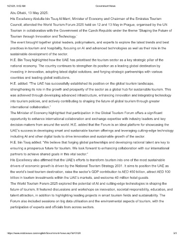 His Excellency also affirmed that the UAE’s efforts to transform tourism into one of the most sustainable
