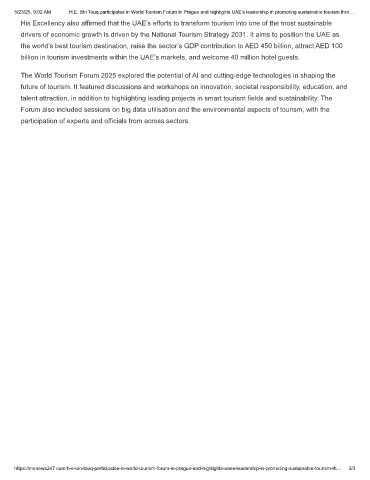 5/23/25, 9:02 AM H.E. Bin Touq participates in World Tourism Forum in Prague and highlights UAE’s leadership in promoting sustainable tourism thro…