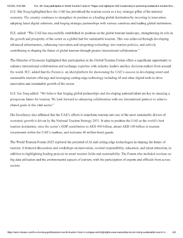5/23/25, 9:03 AM H.E. Bin Touq participates in World Tourism Forum in Prague and highlights UAE’s leadership in promoting sustainable tourism thro…