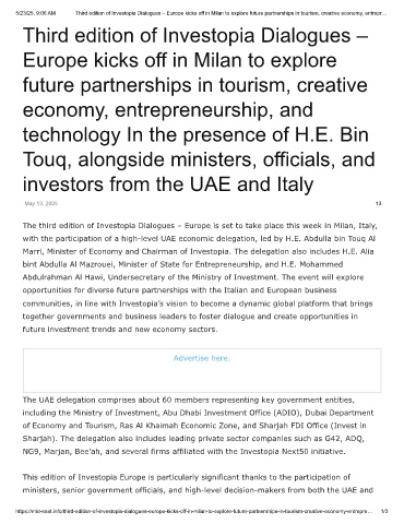 5/23/25, 9:06 AM Third edition of Investopia Dialogues – Europe kicks off in Milan to explore future partnerships in tourism, creative economy, entrepr…