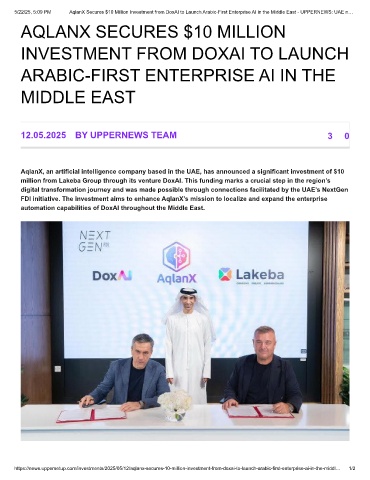 5/22/25, 5:09 PM AqlanX Secures $10 Million Investment from DoxAI to Launch Arabic-First Enterprise AI in the Middle East - UPPERNEWS: UAE n…