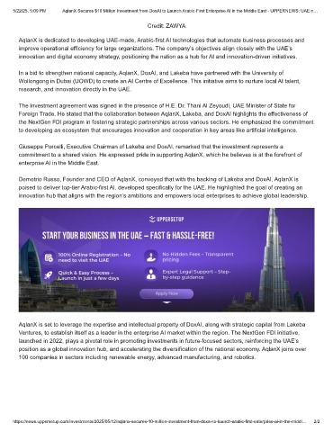 5/22/25, 5:09 PM AqlanX Secures $10 Million Investment from DoxAI to Launch Arabic-First Enterprise AI in the Middle East - UPPERNEWS: UAE n…