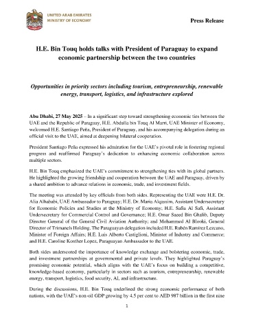 UAE and the Republic of Paraguay, H.E. Abdulla bin Touq Al Marri, UAE Minister of Economy,