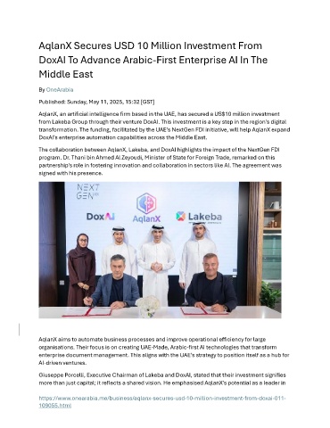 transformation. The funding, facilitated by the UAE’s NextGen FDI initiative, will help AqlanX expand