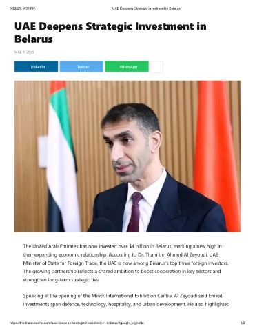 5/22/25, 4:36 PM UAE Deepens Strategic Investment in Belarus