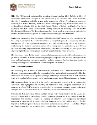Furthermore, Her Excellency briefed German private sector representatives on the UAE’s key