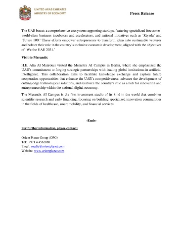 cooperation opportunities that enhance the UAE’s competitiveness, advance the development of
