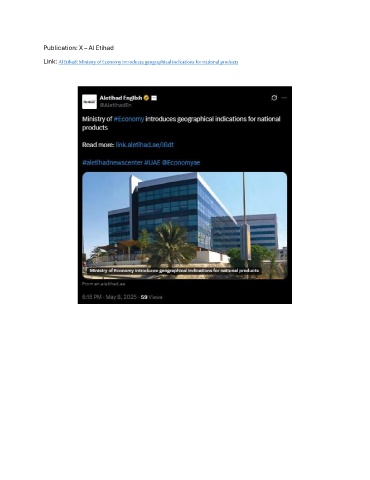 Publication: X – Al Etihad Link: Al Etihad: Ministry of Economy introduces geographical indications for national products