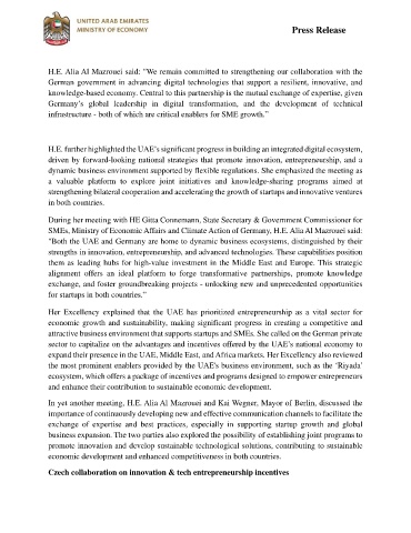 SMEs, Ministry of Economic Affairs and Climate Action of Germany, H.E. Alia Al Mazrouei said: