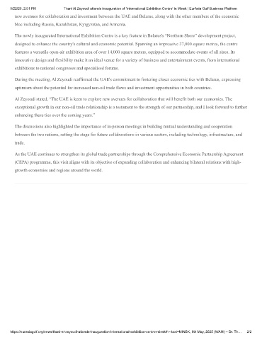 https://eurasiagulf.org/news/thani-al-zeyoudi-attends-inauguration-international-exhibition-centre-minsk#:~:text=MINSK, 8th May, 2025 (WAM) -- Dr. Th… 2/2