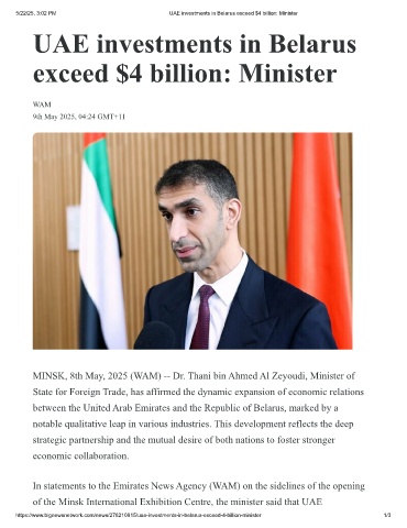 5/22/25, 3:02 PM UAE investments in Belarus exceed $4 billion: Minister