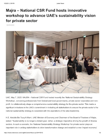 UAE, May 7, 2025: MAJRA – National CSR Fund hosted recently the ‘National Sustainability Strategy