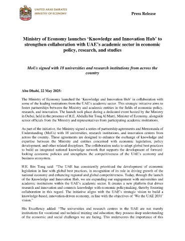 The Ministry of Economy launched the ‘Knowledge and Innovation Hub’ in collaboration with