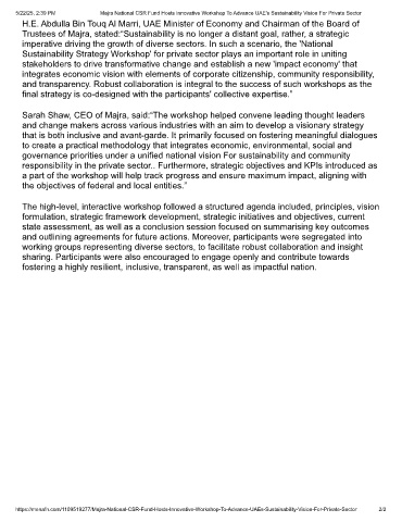 https://menafn.com/1109519277/Majra-National-CSR-Fund-Hosts-Innovative-Workshop-To-Advance-UAEs-Sustainability-Vision-For-Private-Sector 2/2