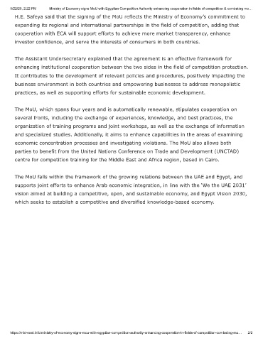 5/22/25, 2:22 PM Ministry of Economy signs MoU with Egyptian Competition Authority enhancing cooperation in fields of competition & combating mo…