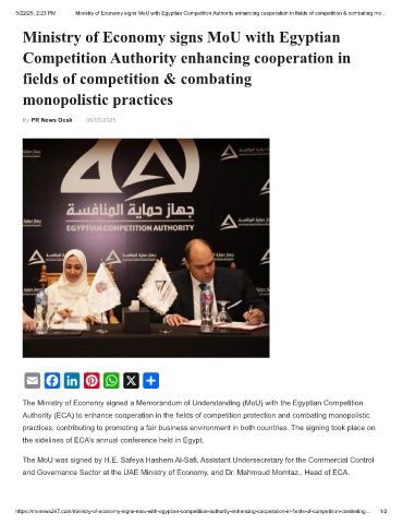 5/22/25, 2:23 PM Ministry of Economy signs MoU with Egyptian Competition Authority enhancing cooperation in fields of competition & combating mo…