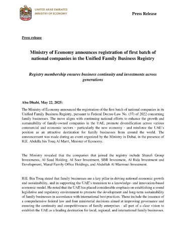 Unified Family Business Registry, pursuant to Federal Decree-Law No. (37) of 2022 concerning