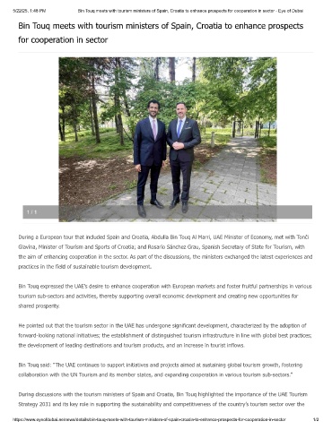 5/22/25, 1:48 PM Bin Touq meets with tourism ministers of Spain, Croatia to enhance prospects for cooperation in sector - Eye of Dubai